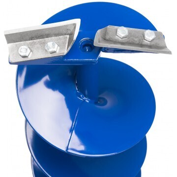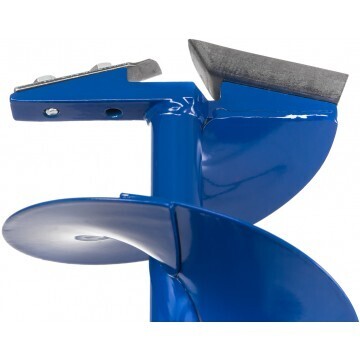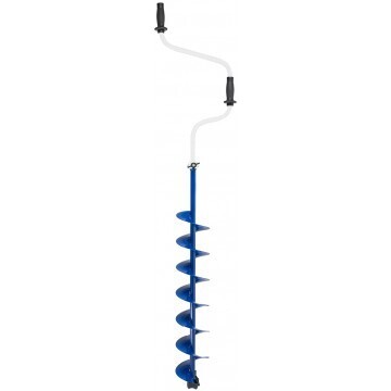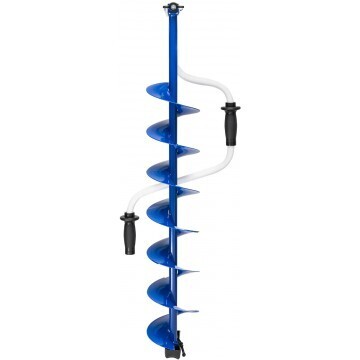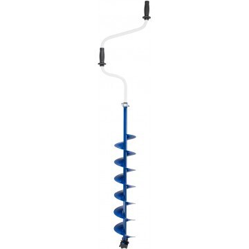 Верхняя рукоятка ледобура смещена относительно оси шнека на 130 мм, а нижняя на 150 мм. Такое расположение рукояток позволяет вращать ледобур одновременно двумя руками, тем самым, не прикладывая особых усилий, увеличивая скорость бурения лунок во льду.