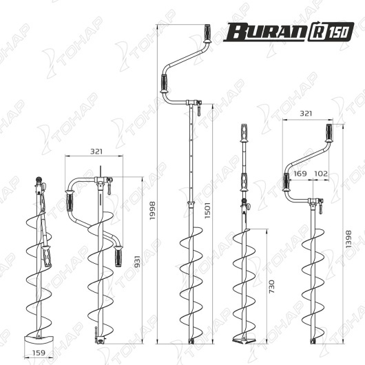 Шнек ледобура BURAN можно использовать для бурения при помощи мотобура или шуруповерта. Диаметр присоединительного отверстия шнека: 20,2 мм.