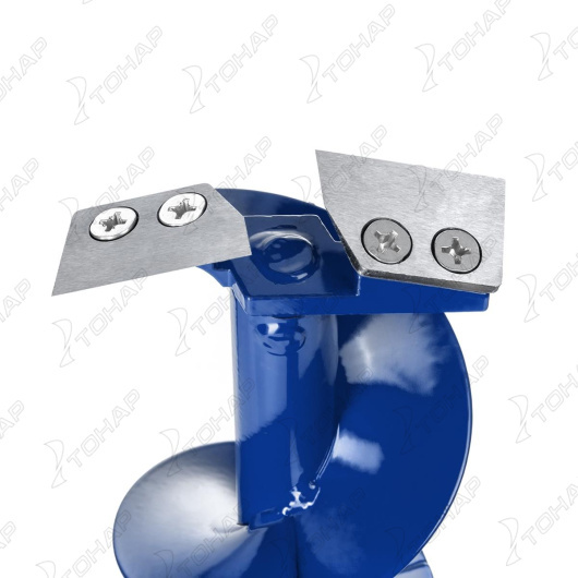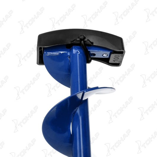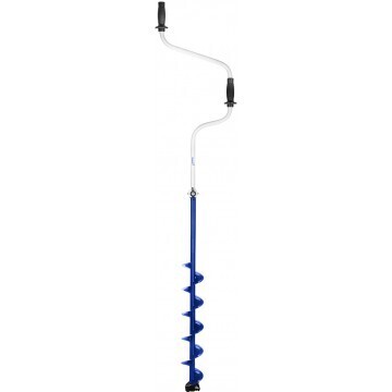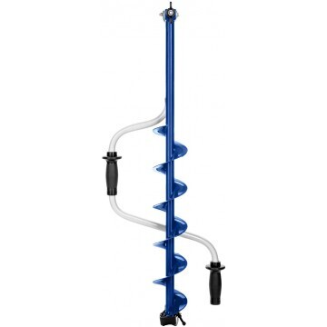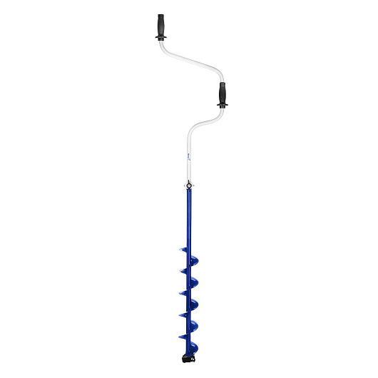Ледобур рыболовный складной шнековый c правым вращением предназначен для бурения отверстий во льду при ловле рыбы. Верхняя рукоятка ледобура смещена относительно оси ледобура на 130 мм, а нижняя на 150 мм. Такое расположение рукояток позволяет вращать ледобур одновременно двумя руками, тем самым, увеличивая скорость бурения лунок во льду.
