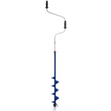 Ледобур рыболовный складной шнековый с правым вращением предназначен для бурения отверстий во льду при ловле рыбы. Верхняя рукоятка ледобура смещена относительно оси ледобура на 130 мм, а нижняя на 150 мм. Такое расположение рукояток позволяет вращать ледобур одновременно двумя руками, тем самым, увеличивая скорость бурения лунок во льду.
