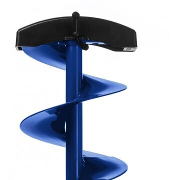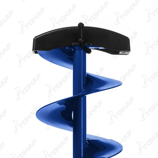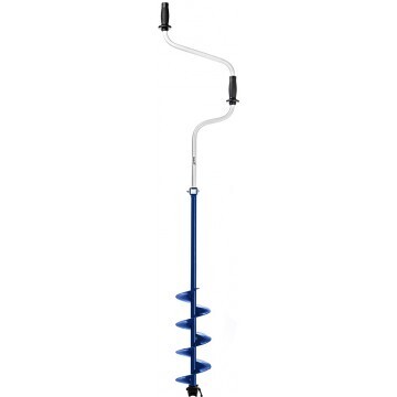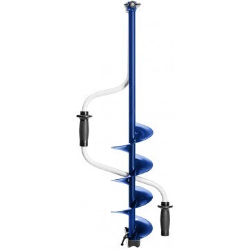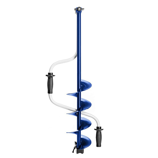 Ледобур рыболовный складной шнековый с правым вращением предназначен для бурения отверстий во льду при ловле рыбы. Верхняя рукоятка ледобура смещена относительно оси ледобура на 130 мм, а нижняя на 150 мм. Такое расположение рукояток позволяет вращать ледобур одновременно двумя руками, тем самым, увеличивая скорость бурения лунок во льду.