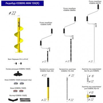 - Нож 'Iceberg 130R v2.0' - 2 шт. (установлены на ледобур).