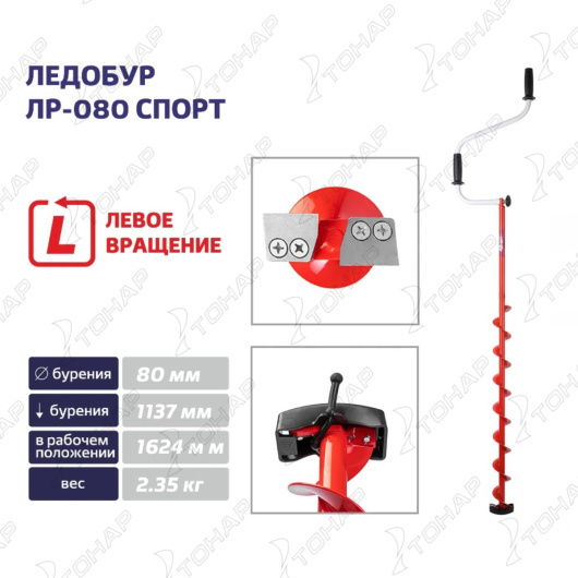 Обновленная версия спортивного ледобура с диаметром бурения 80 мм имеет цельнотянутый шнек.