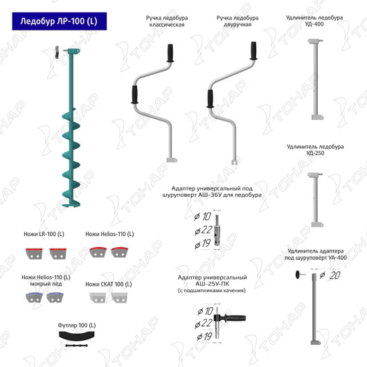 - Вес ледобура: 2,3 кг (+/-0.2).