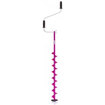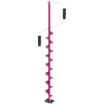 Верхняя рукоятка ледобура смещена относительно оси ледобура на 105 мм, а нижняя на 165 мм. Такое расположение рукояток позволяет вращать ледобур одновременно двумя руками, тем самым увеличивая скорость бурения лунок во льду.