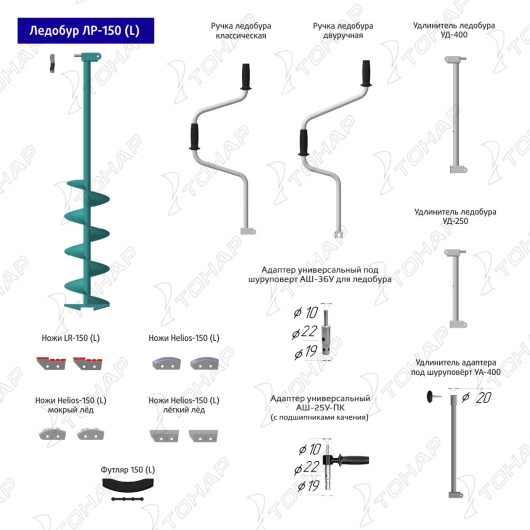 - Вес ледобура: 2,5 кг (+/-0.2).
