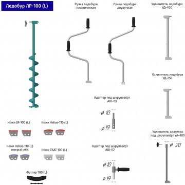 Если вы живете в районах, где глубина льда два и более метра то эта модель вам тоже подойдет. Глубину бурения можно увеличить добавив удлинители УД-400 или УД-250. В зависимости на какую глубину вам нужно увеличить, удлинители могут собираться в любой последовательности между собой и крепится к буру.