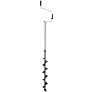 Верхняя рукоятка ледобура смещена относительно оси ледобура на 101 мм, а нижняя на 170 мм. Такое расположение рукояток позволяет вращать ледобур одновременно двумя руками, тем самым увеличивая скорость бурения лунок во льду. Телескопическая вставка-удлинитель комфортно бурить лед, подстраивая ледобур под рост рыболова. Возможно ступенчато увеличивать глубину бурения до полутора метров.
