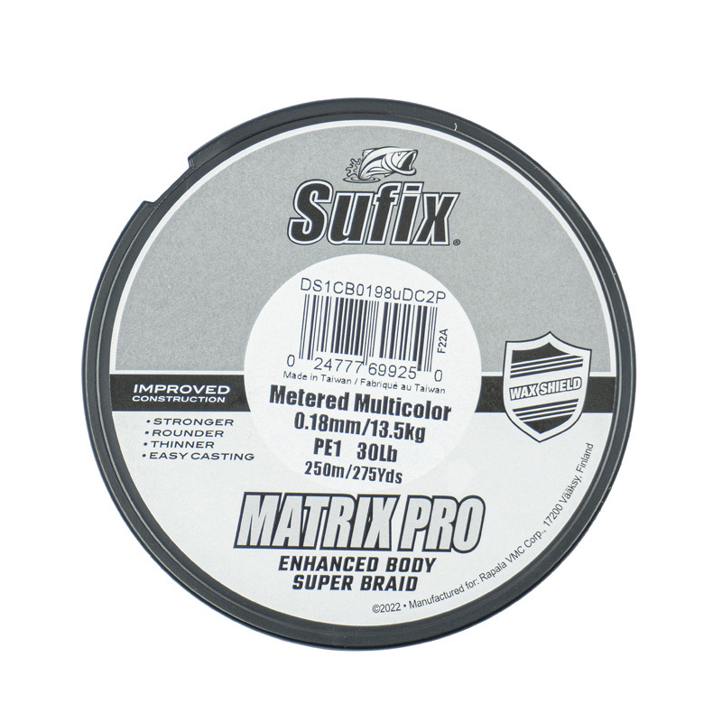 SUFIX Matrix Pro — высококачественная плетёная леска, отвечающая всем потребностям рыболова. Прочная, удобная в использовании, почти не растяжимая и облегчающая забросы. Уникальная технология плетения Matrix позволяет изготовить круглую в сечении леску, которая работает гораздо лучше, чем обычные плоские. Круглая плетёнка лучше ведет себя при забросе, поэтому вы сможете бросать точнее и дальше. Состоит из чистого высокомолекулярного полиэтилена (100% PE!), имеет высочайшую прочность, обеспечивает высокую чувствительность и быструю подсечку. Кроме того, Matrix Pro обладает невероятной износостойкостью.