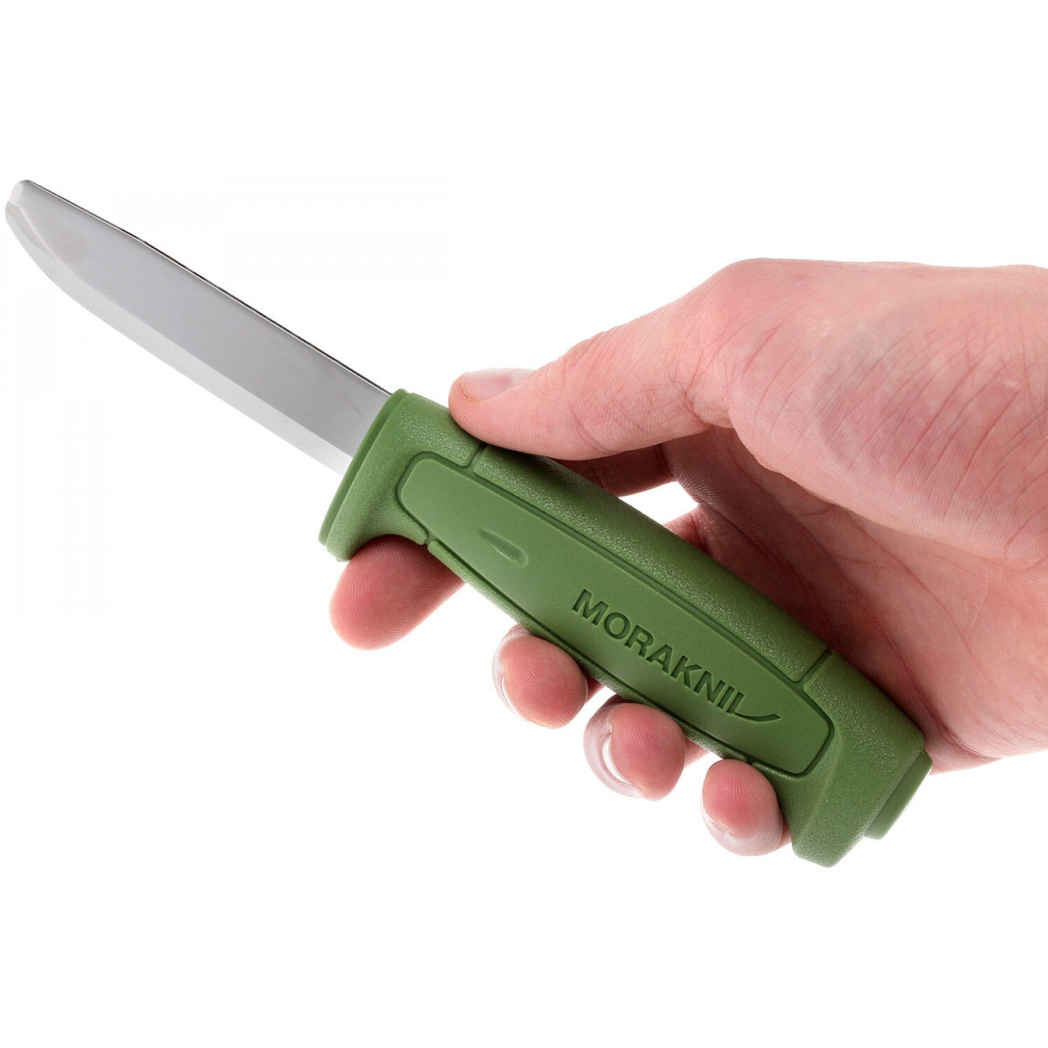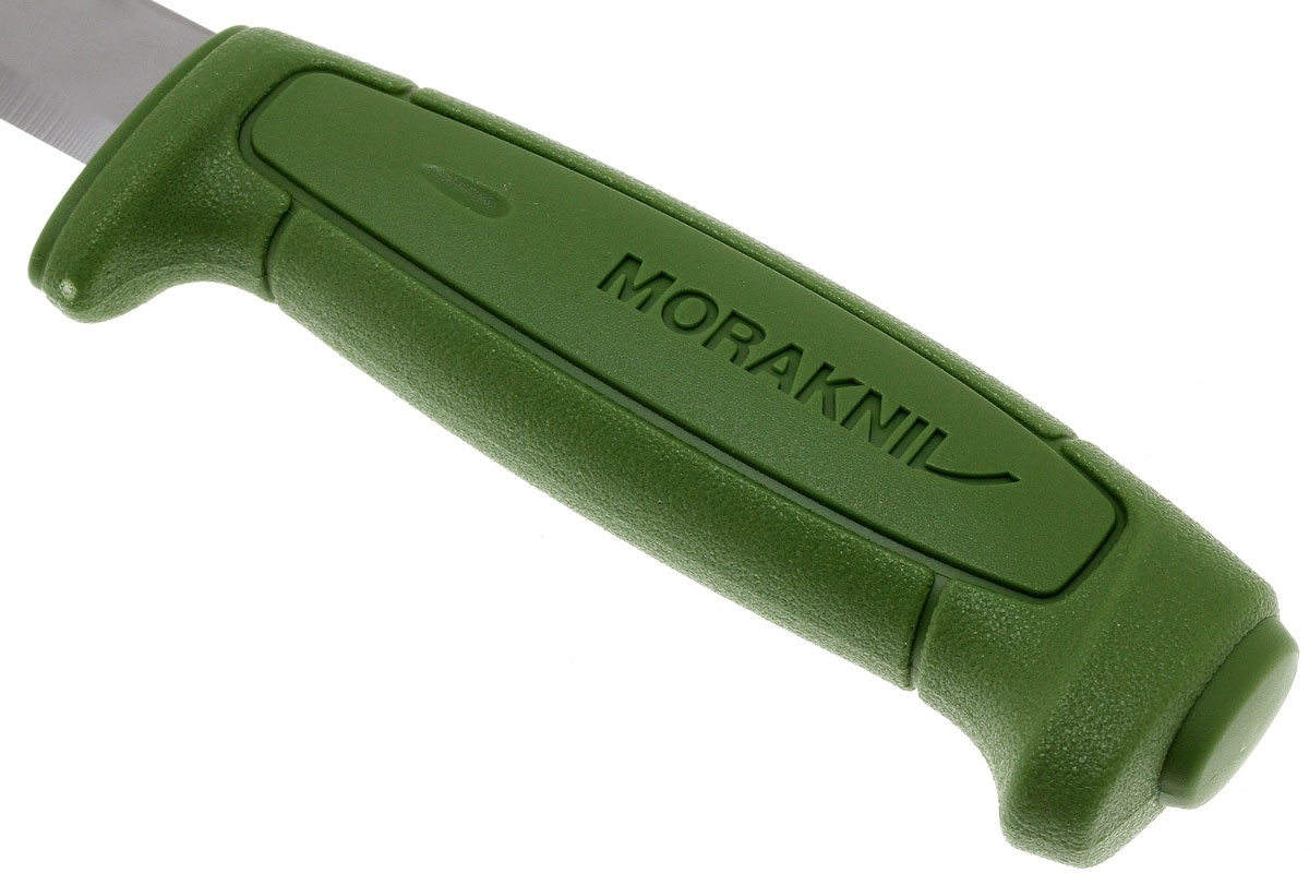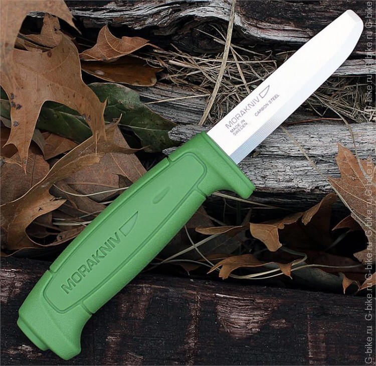 Модель Mora Safe можут использоваться и как универсальный туристический нож, и как клинок для спасательных работ. У него гладкая заточка и закругленный кончик, который делает использование ножа более безопасным. Клинок сделан из прочной углеродистой стали.